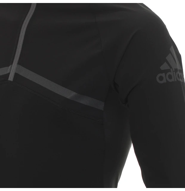 Hybrid midlayer fra Adidas i blødt og strækbart materiale. Trøjen er desuden lavet med et vandafvisende materiale og med UV-beskyttelse mod solen. Denne midlayer er derfor rigtig god til overgang og skiftende vejr. Nem at have med i baggen.