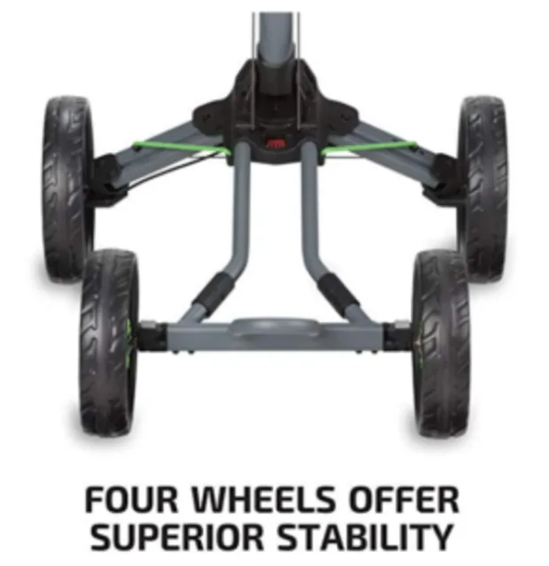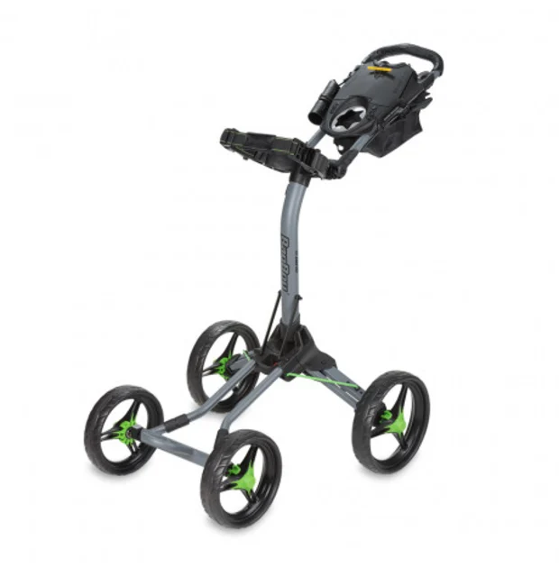 Foldes sammen på to sekunder!BagBoy Quad XL er en meget stabil og let 4-hjulet golfvogn, der er produceret i let, vejr resistant aluminum.Denne vogn har ekstra dyb scorecard konsol med plads til opbevaring af golfbolde og med mobiltelefon holder. Den har samtidig en ekstra stor taske til tilbehør. Der kan side både stand- og cartbags.Paraplyholder inkluderet.