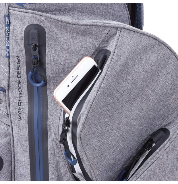 Ny model 2020. Denne lækre golfbag fra Big Max er 100% vandtæt. Dine golfjern og køller bliver organiseret super smart i denne bag, med plads til 15 jern og køller (og rigtig god plads til din putter – også med stort headcover). Den kommer med paraplyholder, aftagelig bæresele, regncover til toppen samt en holder til håndklæde, handsker eller lignende.
