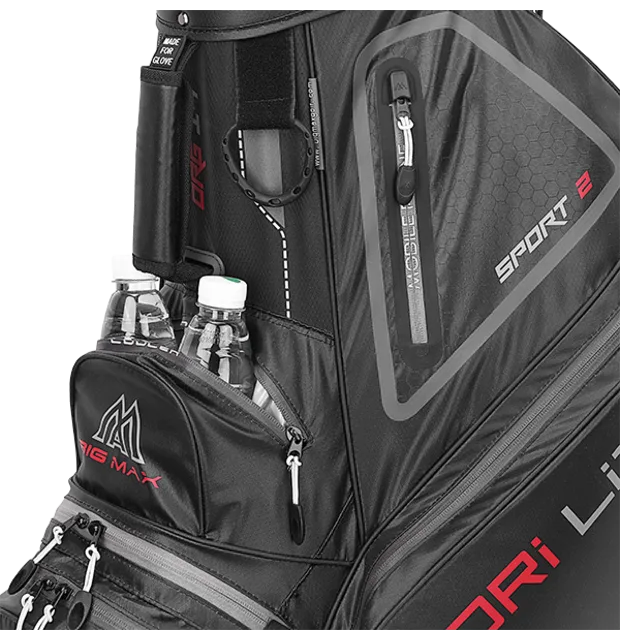 Big Max Dri Lite Sport 2 er en af de bedste vognbags du kan finde på markedet. Den har alt hvad man har brug for på golfbanen og mere til. Der er i alt 7 lommer på bagen så du kan have alt det nødvendige med ud på runden. Du finder også en kølelomme så du kan få en kold læskedrik halvejs. Vognbagen er også vandafvisende med Dri Lite teknologien. Den sørger for at alle dine ting forbliver tørre lige meget hvor våd en dag man tager afsted. Der også en 100% vandtæt lomme til telefon og lignende.