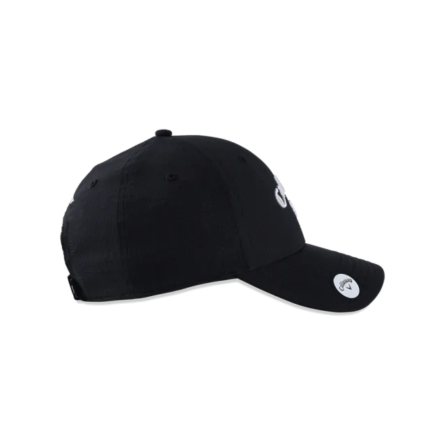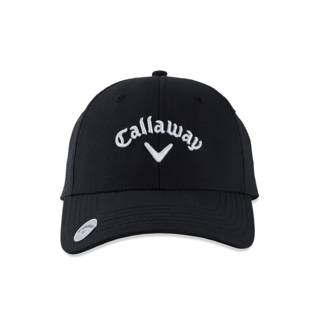 Cap fra Callaway med bold-markør, som kan sættes fast på skyggen med magnet. Den er lavet i et nanotech materiale, der gør den pletafvisende og fugttransporterende.
