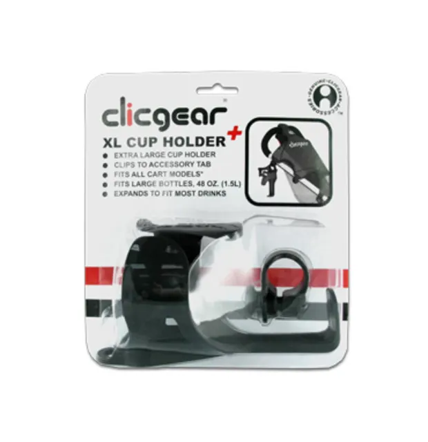 Den ekstra store holder til drikkedunke kan holde falsker op til 1.5L og kan nemt tages af og på din Clicgear vogn.Holderen passer til alle Clicgear vogne og andre mærke vogne med 1″ stel.