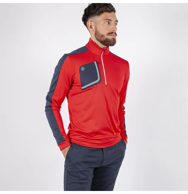 Smart mellemlagstrøje med half-zip fra Galvin Green. Trøjen er stretchy som gør den meget bevægelig og dermed også meget behagelig at have på. Den er desuden lavet i åndbare fibre, så du kan komme af med varmen.Quickdry effekt sikrer at trøjen hurtigt tørrer igen.
