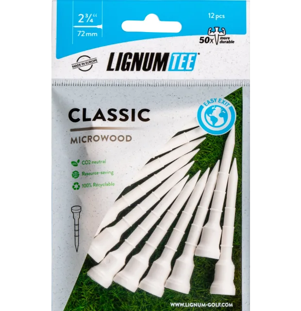 Lignum har efter flere års forskning udviklet en golf tee af høj kvalitet, som i disse år går sin sejrsgang over hele verden .Denne tee består af “træmikrokugler” og en miljøvenlig smeltelim som er fremstillet i højteknologiske støbemaskiner, der sikrer en ensartet kvalitet hver gang. Fleksibiliteten i tee’en gør, at du kan ramme den vertikalt og horisontalt med golfkøllen, uden at den går i stykker. Desuden er LIGNUM Tee beregnet til brug som gradueret tee, dvs. tee’en hjælper dig med at “huske”, hvor højt du skal tee’e bolden ved de forskellige køller. Efter et godt sving rammer du golfbolden med ca. 35 m/sek. Svinghastigheden reduceres til ca. 6 – 8 m/sek., når du rammer bolden pga. af friktionsmodstanden. For at reducere denne fiktionsmodstand og overføre golfkøllens hastighed til bolden, er LIGNUM Tee fleksibel. Det øger boldens hastighed med ca. 20%!