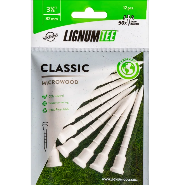 Lignum har efter flere års forskning udviklet en golf tee af høj kvalitet, som i disse år går sin sejrsgang over hele verden.Denne tee består af “træmikrokugler” og en miljøvenlig smeltelim som er fremstilles i højteknologiske støbemaskiner, der sikrer en ensartet kvalitet hver gang. Fleksibiliteten i tee’en gør, at du kan ramme den vertikalt og horisontalt med golfkøllen, uden at den går i stykker. Desuden er LIGNUM Tee beregnet til brug som gradueret tee, dvs. tee’en hjælper dig med at “huske”, hvor højt du skal tee’e bolden ved de forskellige køller. Efter et godt sving rammer du golfbolden med ca. 35 m/sek. Svinghastigheden reduceres til ca. 6 – 8 m/sek., når du rammer bolden pga. af friktionsmodstanden. For at reducere denne fiktionsmodstand og overføre golfkøllens hastighed til bolden, er LIGNUM Tee fleksibel. Det øger boldens hastighed med ca. 20%!