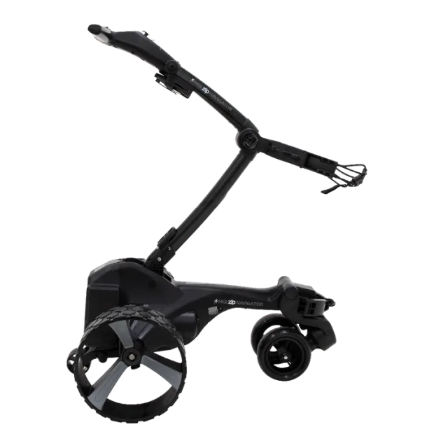 Vognen har en svingbar forhjul, der giver fremragende manøvredygtighed. Det fuldt foldbare 4. bageste hjul bidrager til stabiliteten under brug. Med MGI Zip X7 Navigator får du en kraftfuld og alsidig golfvogn, der kan håndtere forskellige terræner og sikrer en behagelig oplevelse på banen.