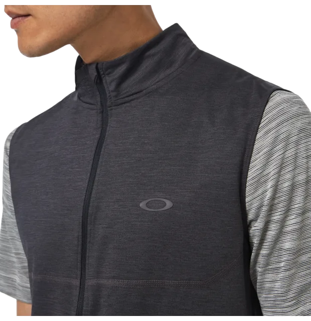 Vesten er lavet af et blødt materiale som forbedre komfort. Den hævede mock-krave tilføjer både stil og varme på køligere dage. På venstre bryst er der et Ellipse formet logo, der symboliserer Oakleys kvalitet og stil. Vestens materialekomposition består af 86% polyester og 14% spandex, hvilket giver holdbarhed, elasticitet og strækbarhed.