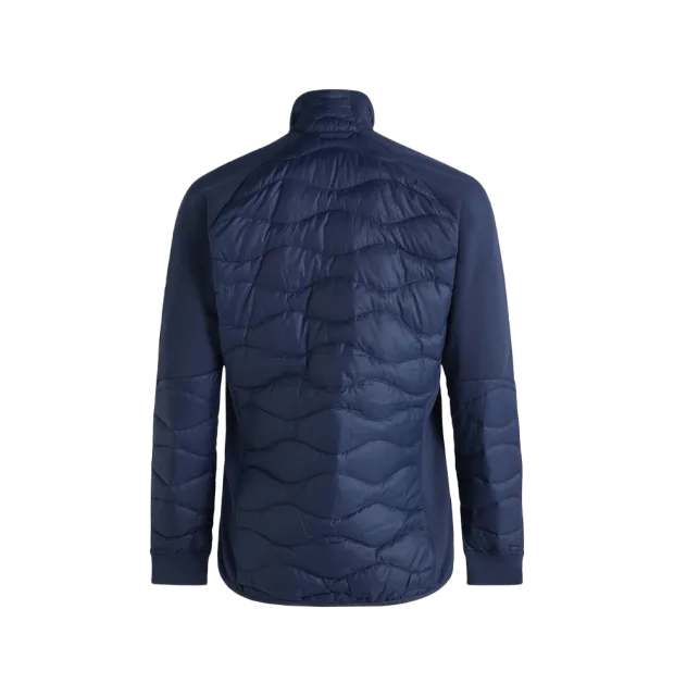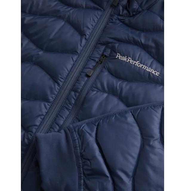 Hybridjakke fra Peak Performance, der kan foldes sammen, så den ikke fylder så meget. Fyldet er af dun, hvilket sikrer, at du bliver holdt varm. Den har strækbare jerseypaneler på siderne og ærmerne, hvilket gør jakken åndbar og utrolig behagelig at have på. Jakken er ideel til tørt vejr eller som et ekstra varmt lag under en skaljakke, både på golfbanen, vandrestien og på skituren.