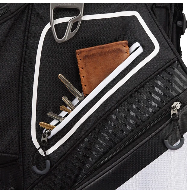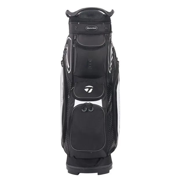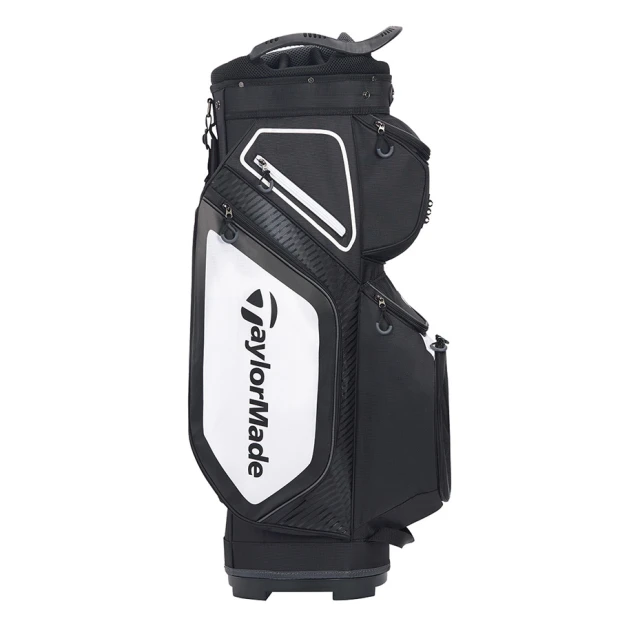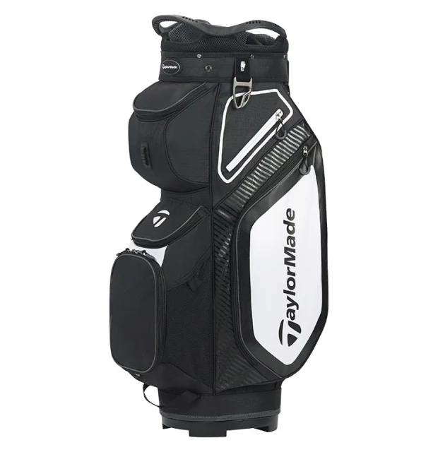 Lækker cart bag fra TaylorMade med 14-vejs top og tre håndtag. Den er lavet i en letvægtskonstruktion der gør den super nem at transportere rundt. Den har en polstret skulderrem og alle lommer vender fremad for at opnå en nem adgang. Den er udstyret med håndklæde ring, paraplyholder og blyantsholder samt regnhætte. Tasken har 8 strategisk placerede lommer inkl. lommer med polstring til værdigenstande, drikkelomme, boldlomme og meget mere.
