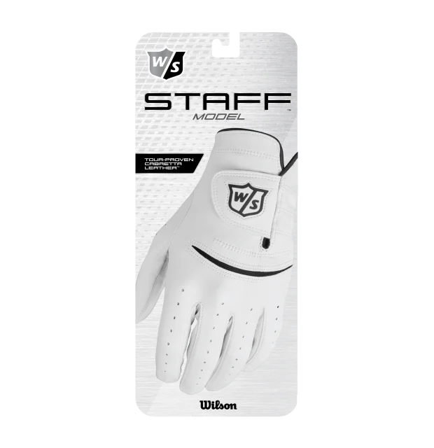 Wilson Staff Model handsken er en golfhandske lavet i meget blødt cabretta læder. Sammen med dette er den formsyet efter den mest optimale form for at give en ekstra følelse igennem golfhandsken.